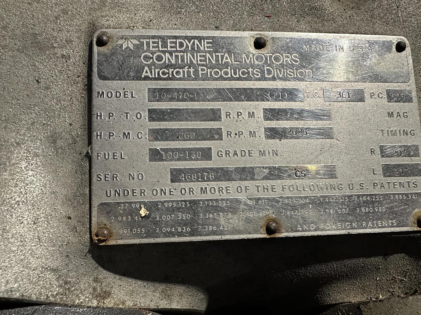 Beechcraft 95-B55 Baron IO-470-L 260 HP Engine Core with Logbook SN# 468178 1480 hrs